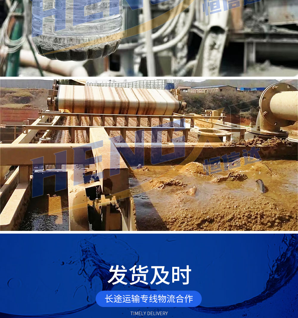 矿山选矿絮凝剂为水溶性线状高分子聚合物,在矿山选矿污水处理中得到广泛使用,产品用于矿山循环水的沉淀、澄清。矿山选矿污水在加入选矿絮凝剂后经脱水设备达到固液分离,进而使循环水干净循环使用。